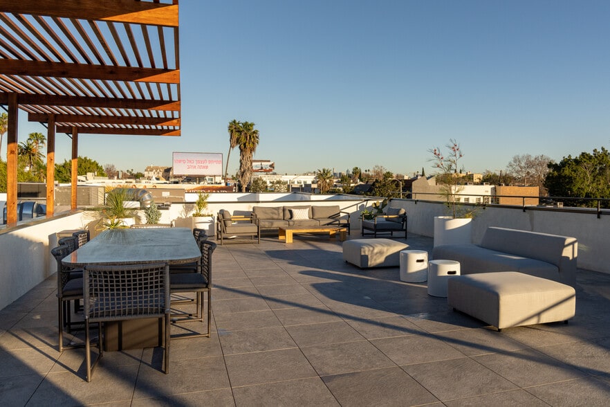 Second floor creative office space with a private restroom in a newly remodeled courtyard building. Hardwood floors throughout. Centrally located on Beverly Boulevard between La Brea and Martel Avenues.