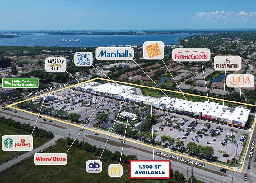 - Dominate power center in West Bradenton, on direct route and 1 mile from world-famous beaches on Anna Maria Island and Longboat Key