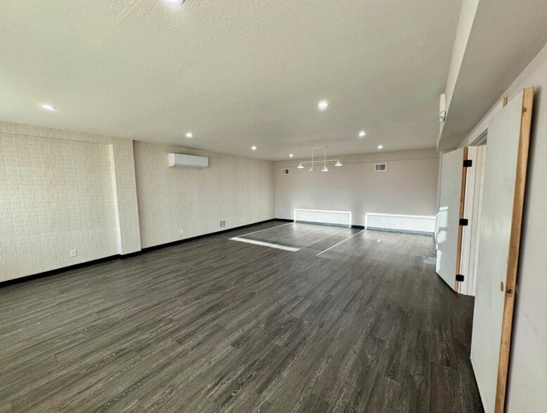 The warehouse features two grade-level doors, ideal for seamless loading and operational flow. Clear heights ranging from approximately 16 feet 6 inches to over 17 feet 8 inches support racking, equipment needs, and modern workflow layouts. Skylights and LED lighting throughout the space provide an appealing, energy-efficient environment. Two restrooms and renovated interior improvements support both administrative and production functions, allowing teams to work comfortably and efficiently.