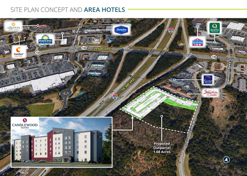 Location: 7495 Davidson Parkway S, Stockbridge, GA, situated in a rapidly growing commercial district with easy access to major highways and nearby amenities. Size: 3.91 buildable acres Zoning: Zoned for commercial use and approved for Hospitality, suitable for various types of businesses including hotel, retail, office space, and light industrial. Topography: Flat terrain, making it ideal for construction with minimal site preparation. Utilities: All utilities (water, sewer, electricity, and gas) are stubbed to the site. Accessibility: Excellent access to Interstate 75 and close proximity to Hartsfield-Jackson Atlanta International Airport. Surroundings: Located in a bustling commercial area with high traffic volume, surrounded by established businesses, restaurants, and shopping centers.