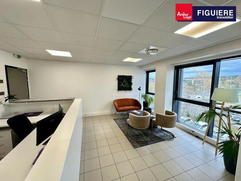 ARTHUR LOYD FIGUIERE IMMOBILIER vous propose une surface de 132 m2 au dernier étage d'un immeuble tertiaire. Emplacement stratégique avec les axes autoroutiers à proximité immédiate. Les locaux sont aménagés en plusieurs bureaux avec salle de réunion et un accueil. Ils sont équipés de la climatisation réversible en faux plafond. Immeuble de très bon standing. 6 places de parking privatives comprises dans le loyer. Bâtiment de 2010 indépendant Terrain clos et sécurisé Espaces verts de qualité et bien entretenus Digicode à l'entrée Carrelage au sol 2ème étage avec ascenseur Vue dégagée Climatisation réversible en faux plafond 5 bureaux Accueil Salle de réunion 6 places de parking privatives