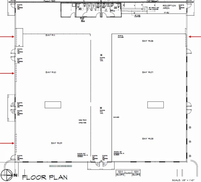 - The space features four (4) 12’x14’ Grade Level roll up doors with cross-access and twelve (12) 36” wide egress man doors.