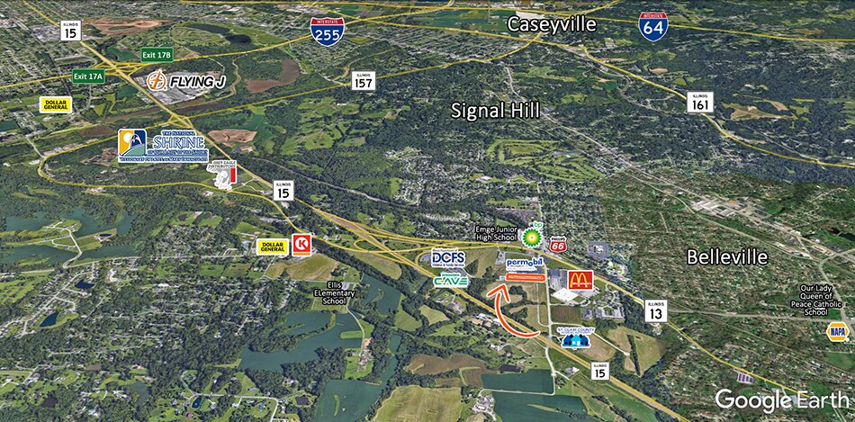 Site is 1/4 of mile off IL Route 15, 4 miles to I-255 and 10 miles to Downtown St. Louis Located near The Center for Academic and Vocational Excellence (CAVE).