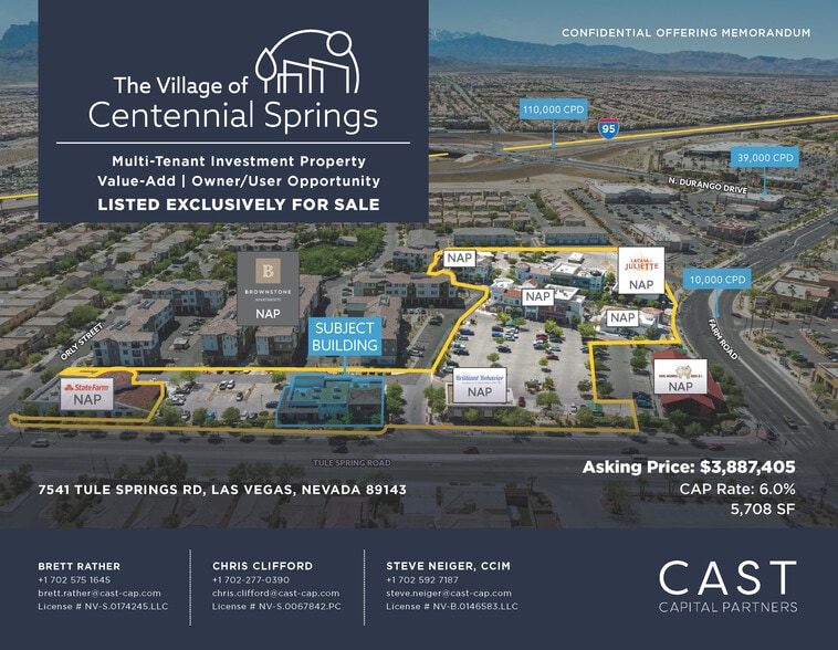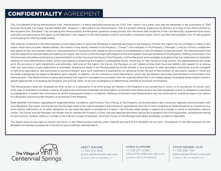 The Village of Centennial Springs 7541 Tule Springs Rd 5,708 SF 66% Leased Retail Building Las Vegas, NV 89131 $5,282,983 CAD ($925.54 CAD/SF) 6% Cap Rate