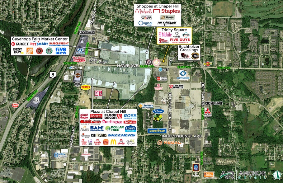 - Prime retail location at a major commercial corridor connecting Cuyahoga Falls and Akron
