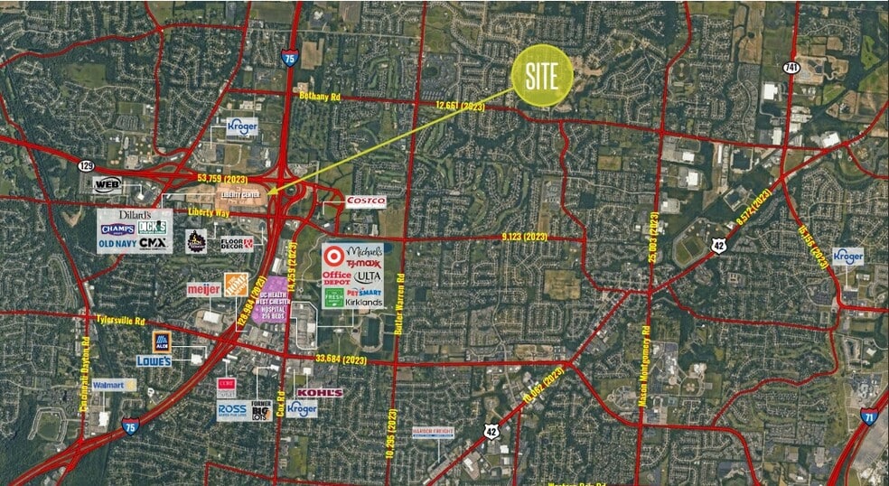 The surrounding area is anchored by major employers such as Cincinnati Children’s Hospital – Liberty Campus, UC Health West Chester Hospital, and Lakota Local Schools, ensuring a robust daytime population. Liberty Center itself is a vibrant mixed-use development combining retail, dining, residential, and office space, attracting consistent foot traffic and regional visitors. With quick connectivity to Cincinnati and Dayton, plus proximity to Tylersville Road and other key commercial corridors, this location offers unmatched regional reach.
