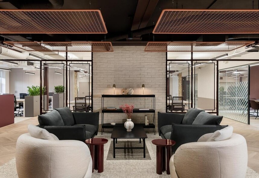 80 Great Eastern Street offers a converted former furniture warehouse retaining much of the industrial features, such as exposed brickwork and steel beams complemented by the modern facilities and amenities any workplace could ever need. The second floor benefits from a high quality fit out to include a reception lobby, kitchen/ breakout area, 6 meeting rooms, 1 board room, 3 executive offices, comms room and a 60 desk arrangement.