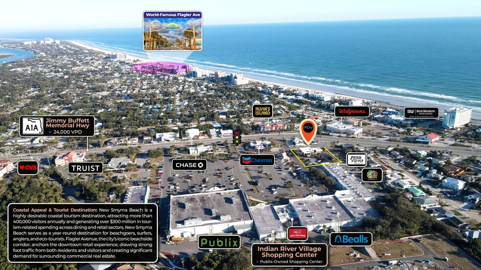 1. Premier Destination: New Smyrna Beach is a popular coastal destination known for its accessible Atlantic beaches, relaxed surf culture, and vibrant waterfront atmosphere. Flagler Avenue anchors the local retail and dining scene, attracting consistent foot traffic from both residents and tourists and driving strong demand for nearby commercial properties.