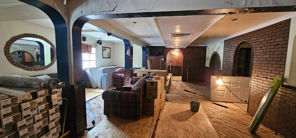 For sale former restaurant/bar/catering hall is over 6300 sq ft. Ample space on-site paved parking, ensuring that parking would never be a problem. The kitchen has 2 ventilation hoods and 2 walk-in boxes and assorted kitchen fixtures being sold in "as-is." The Liquor License sold separately for $145,000. Property serviced by on site well and septic system condition unknown. ***This property needs renovation. cash sale only. Sold in as-is condition. Additional 3/4 acre lot also available.