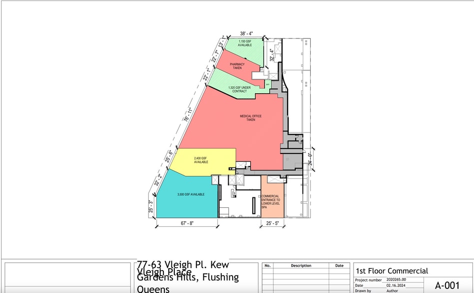 An exceptional newly constructed mixed use building featuring premier ground-floor retail/office space. This prime location offers high ceilings, floor-to-ceiling storefront exposure, and potential for large contiguous layouts — an ideal fit for flagship retail, fitness, medical office, or showroom users. Space Available & Terms Ground Floor Suite 3: Approx. 1,320 SF, shell condition, available now. Rate: $65.00 / SF / yr Ground Floor Suite 2: Approx. 2,400 SF, shell condition, available now. Rate: $65.00 / SF / yr . Ground Floor Suite 1: Approx. 3500 SF, shell condition, available now. Rate: $65.00 / SF / yr . Ground Floor Option to combine Suite 1 and 2: Approx. 5900 SF, shell condition, available now. Rate: $65.00 / SF / yr . Key Highlights High finished ceiling heights (~13 ft) across storefront zones. Floor-to-ceiling glass storefronts yield maximum visibility and branding exposure. On-site parking available. Located in a dense, multi-family residential neighborhood with stable demographics and strong foot-traffic potential. Tax abatement in place for commercial component Superb transit & neighborhood access (Main Street / Kew Gardens Hills corridor) — strong for customer base, staff commute, etc. Ideal User Profiles: Flagship or specialty retail concepts seeking ground-floor exposure in a premium Queens location. Medical, dental, or wellness operators seeking showroom-level finishes + strong residential catchment. Fitness/athletics (boutique gym, Pilates, spin studio) thanks to high ceilings and contiguous shell layout potential. Office users seeking HQ-style space with storefront branding and local street presence. Location / Neighborhood Situated along Vleigh Place near the vibrant Main Street commercial corridor, this location benefits from both vehicular and pedestrian traffic, strong local demographics, and established residential density in Kew Gardens Hills.