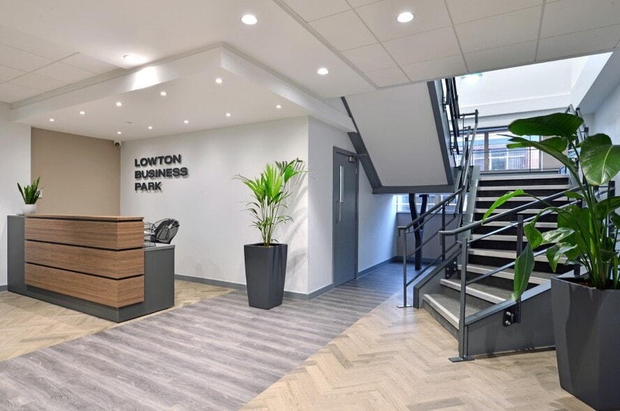 Lowton Business Park’s offices are situated in the main building through the reception area, which has been remodelled to create an open-plan, contemporary welcome space with breakout areas and reception desk. The office suites are on the ground and first floor, ranging in size from 155 sq ft up to 3,130 sq ft. Terms are flexible according to individual tenant requirements, with short and long-term agreements available.