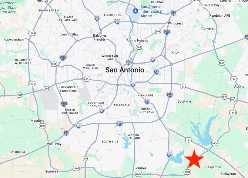 144 acres in the South San Antonio MSA with minimal development restrictions due to its location in Bexar County outside city limits (OCL). The property offers a combination of immediate utility and near-term development potential, featuring approximately 95 acres of flat, cleared land well-suited for industrial, residential, storage, yard, or flex uses. The front ±49 acres is improved with a small office/home structure and multiple workshop/warehouse buildings totaling approx. 16,000 SF, creating functionality for an owner-user or interim operations. Strategically located with convenient access to I-37, Hwy 181, and Loop 1604 (0.5 mile), the site provides strong connectivity to South San Antonio, major industrial corridors, and regional distribution routes. Buyer to independently verify zoning, utilities, access, floodplain, entitlements, and development feasibility.