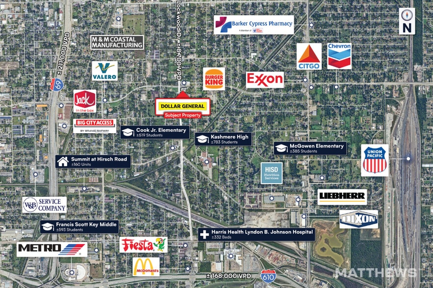 - Prime Location - Located on a hard corner at lighted intersection and less than 1 mile from I-45 (240,457 VPD)