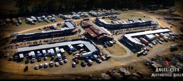 At the center of the property is a fully constructed Old West-style vendor town built from cypress wood. The town includes two restaurant and bar facilities along with dedicated vendor and retail spaces that serve as the primary gathering area during events. Additional improvements include a large amphitheater, a covered stage, and a dirt racetrack, providing the structural foundation necessary to host rallies, festivals, concerts, and other organized outdoor gatherings.