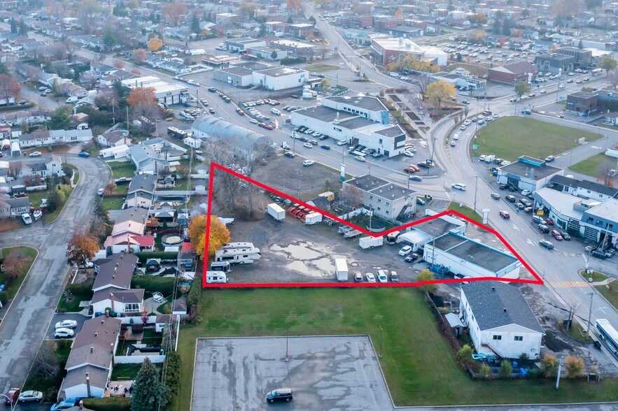 Large PRIME SPOT lot of 47,673 square feet (composed of 2 lots) and located in the city center of Terrebonne between Highway 640 and Highway 25. Building of approximately 6,000 square feet with a showroom area, basement and 4 garage doors currently built on one of the two lots (formerly Docteur du windshield but with a clientele still active). Building to demolish or use/renovate according to your projects. Possible future zoning change (to be verified with the competent authorities concerned). A lot of potential now and in the future for this location perfectly well positioned in the region and easy to access.