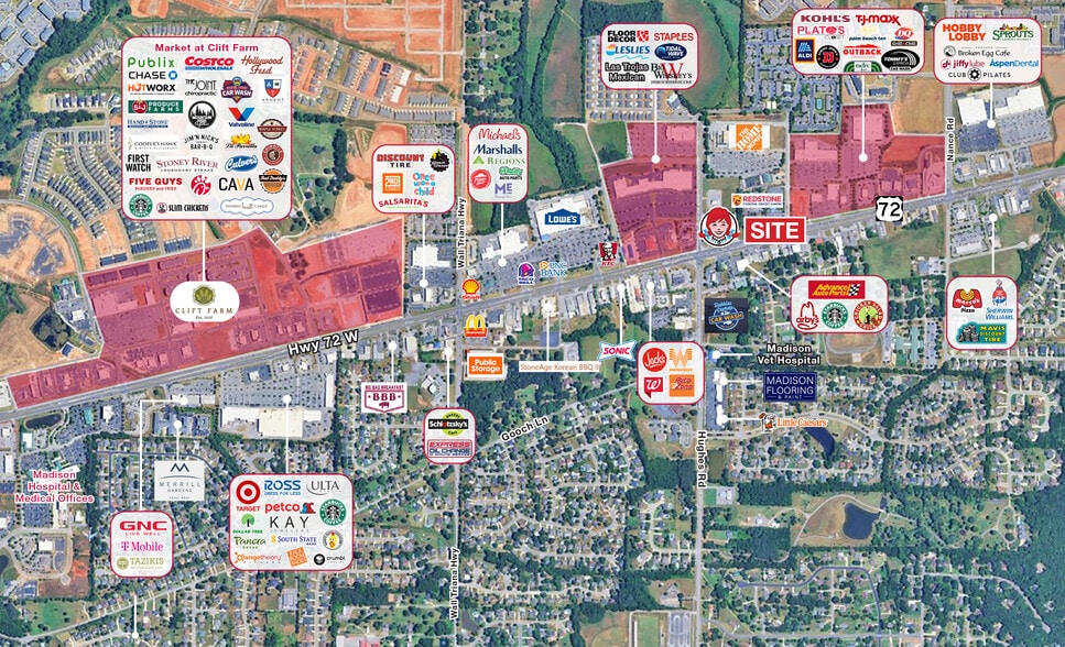 - Located just east of the Clift Farm development on Hwy 72, which is Madison’s most dynamic commercial additions