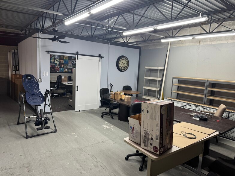 Industrial Flex Condo for sale. The condo spans 2,738 SF plus a 756 SF concrete mezzanine. The flex space features 1,010 SF of office space that includes 3 private offices, 2 bathrooms, a kitchenette, and lobby. The Mezzanine is above the offices and features extra storage space and an additional private office. The warehouse is 1,728 SF and clear span. The entire condo is climate controlled with 20' ceilings and a 12'x14' DID. Current tenant plans to move out in Spring 2026.