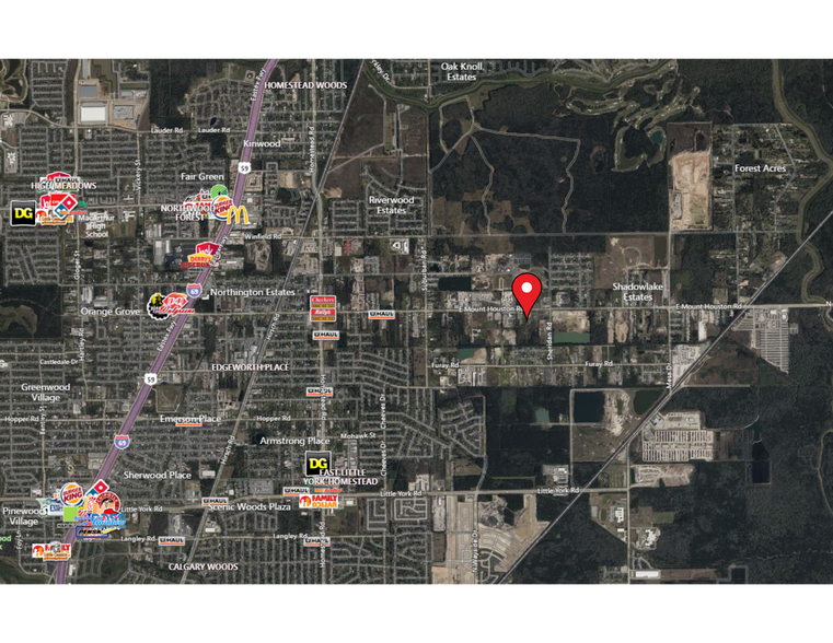 - Strong visibility with approximately 312.9 feet of frontage on E. Mt. Houston Rd. and just about 2.5 miles from Interstate 59/69