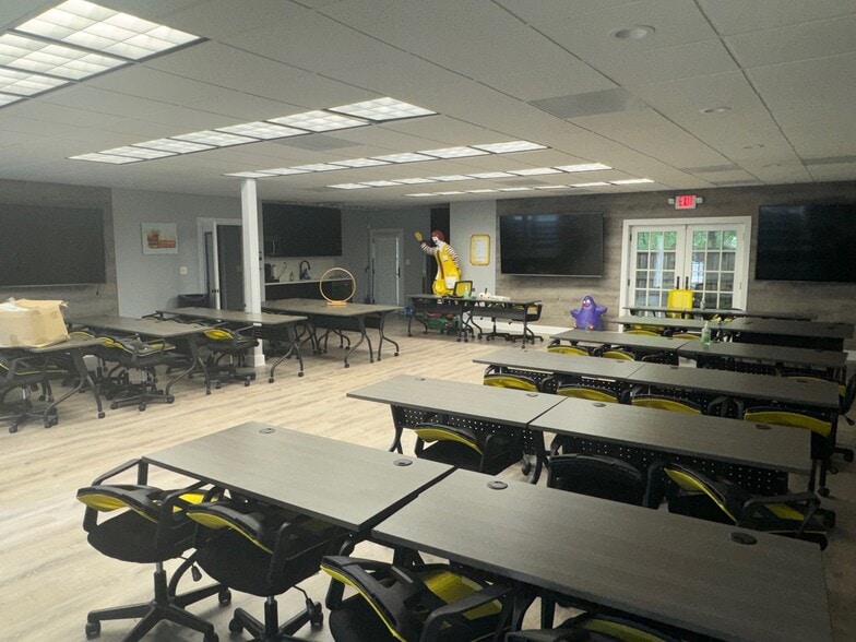 The entire first floor consists of units 7821, 7825, 7829, and 7833, totaling 4,294 square feet, priced at $850,000. These finished professional suites are built to attorney's standards. The layout includes five separate office rooms, one full bathroom with a shower, one half bathroom, a kitchenette, four large storage areas, and a spacious conference room that is centrally located.