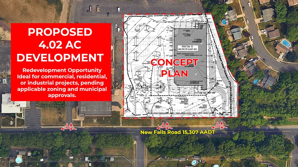 - Prime Frontage and Visibility Along New Falls Road (15,307 AADT) in the Heart of Fairless Hills’ Established Commercial corridor