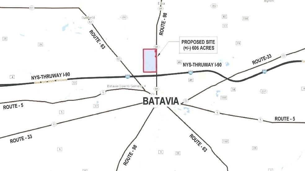 Great location between Buffalo and Rochester NY. Over 2,300,000 million people within 60 minutes of Batavia. Bring your project to Genesee County's best location for large scale development. Zoned and ready for your use.