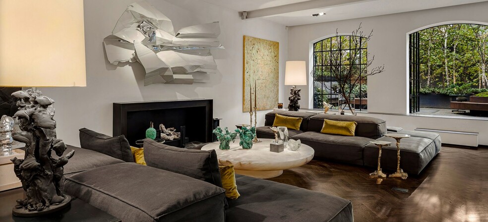 A long, atmospheric corridor leads to a dramatic double-height gallery, where brick, steel and polished concrete form a striking backdrop. Adjoining this are a fully equipped ceramics studio with a kiln and a series of flexible workspaces. An additional area, accessed via a private entrance, offers further versatility, perfect as an exhibition space, creative office or guest suite. Beyond lies a private terrace and garden planted with two hundred silver birch trees, creating a green outdoor room that creates an oasis in the heart of the city.