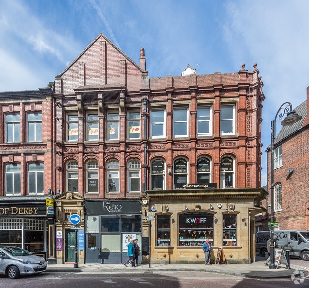 The property comprises of a traditional red-brick mid-terrace building. The unit features a glazed entrance door and three large windows providing natural light to the interior. The building retains period character with stone detailing and a prominent street frontage, ideal for signage and visibility. Located on a cobbled street in a busy town center area, the property offers excellent potential for retail, office, or service-based businesses.