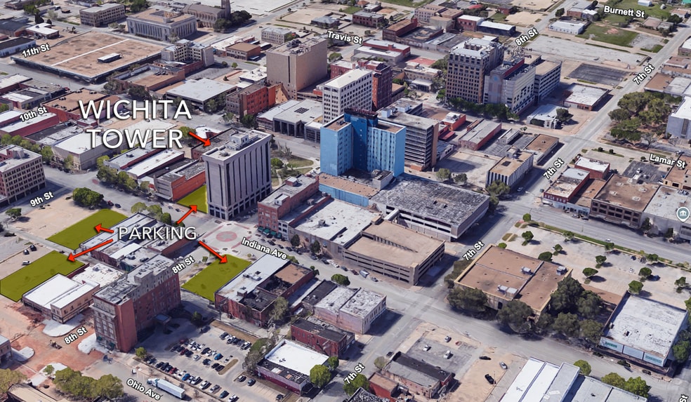 Wichita Tower is a 12-story historic high-rise located in the heart of downtown Wichita Falls. The ±90,743 SF concrete and steel structure offers a strong foundation for mixed-use multifamily conversion, and the property includes four adjacent surface parking lots totaling 190+ dedicated spaces — an uncommon asset in the CBD where most buildings rely heavily on street parking. This parking control materially enhances redevelopment feasibility and long-term competitiveness.