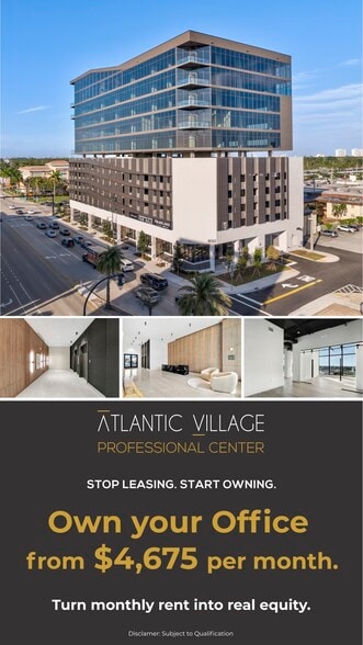 Atlantic Village Professional Center at 800 N Federal Highway offers 110,000 SF of modern Class A commercial space within the vibrant mixed-use community of Atlantic Village in Hallandale Beach. This 12-story landmark features retail and medical office spaces surrounded by premier dining, shopping, and entertainment. Tenants will enjoy access to over 20 restaurants, including, Murano by Ferraro, Wagyu Bar, Doggi's, and Crema, along with on-site wellness and family amenities such as academies, and playgrounds. The property presents a unique opportunity to own or occupy an exceptional workspace in a prime location with direct access to major highways and minutes from FLL Airport. Atlantic Village Professional Center redefines the modern workplace - combining convenience, lifestyle, and prestige in one of South Florida’s most desirable destinations.