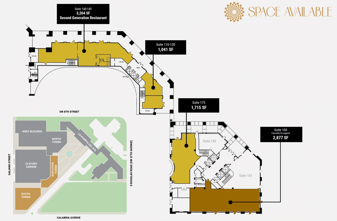 Discover Douglas Entrance, the only business park in Coral Gables and a city landmark. From the iconic entry arch and bell tower to the tropical landscaping and expansive courtyards, Douglas Entrance is a premier, Class A environment offering everything a company could need in one location. In a place where old-world charm and elegance come together, Douglas Entrance offers the most exclusive business environment in Coral Gables. On the exterior, the property appears as a picturesque, Spanish-walled city. Inside the common grounds, you will find the property’s signature promenade, lush landscaping, private courtyards, mature trees, and stunning fountains. Every day, tenants and guests are welcomed into this seemingly Mediterranean oasis. Adding to its appeal, Douglas Entrance features restaurant and retail spaces on the ground floor, serving the 475,00-square-foot office complex and the surrounding community. A smart business move for tenants seeking a steady traffic flow and visibility, these spaces benefit from built-in demand and a vibrant atmosphere. Douglas Entrance is just minutes away from Miami International Airport and the Port of Miami and is surrounded by the city’s countless outdoor cafés, fine dining experiences, exceptional shopping, and world-class hotels. Offering excellent access and on-site parking, complemented by numerous public transportation options, Douglas Entrance is one of the most signature historical buildings that restaurants and private clubs will ever have a chance to lease.