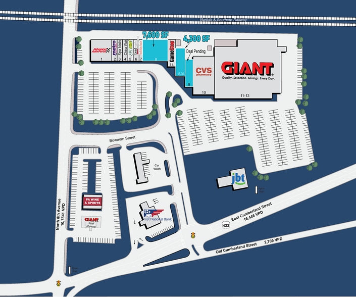 Join GIANT, CVS, Subway, Advance Auto, Gamestop 108,085 +/- sf GLA Area tenants: Walmart, Weis, ALDI, Home Depot Located on east side of Lebanon 20,376 ADT Old Cumberland St & Bowman St. Lat: 76.395581 Long: 40.343744