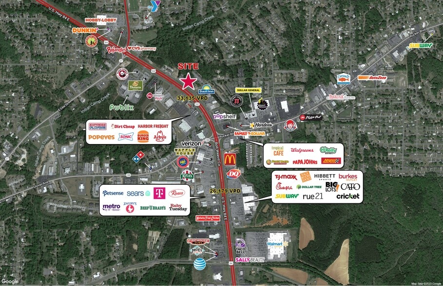 - Surrounded by a plethora of national retailers including Harbor Freight Tools, Walmart Supercenter, CVS Pharmacy, Hobby Lobby, popshelf, Family Dollar, Dollar General, Walgreens, Petsense, Advance Auto Parts, O'Reilly Auto Parts, Big Lots, TJ Maxx, Cato Fashion, Burkes Outlet, Hibbett Sports, Verizon, Dollar Tree - Surrounded by QSRs including Chick-Fil-A, Panera Bread, Subway, KFC, Zaxby's, McDonald's, Hardee's, Papa John's Pizza, Wendy's, Burger King, Sonic Drive-In, Chicken Salad Chick, Popeyes, Arby's, Panada Express, Bojangles, Dunkin', Dairy Queen Grill & Chill, Ruby Tuesday