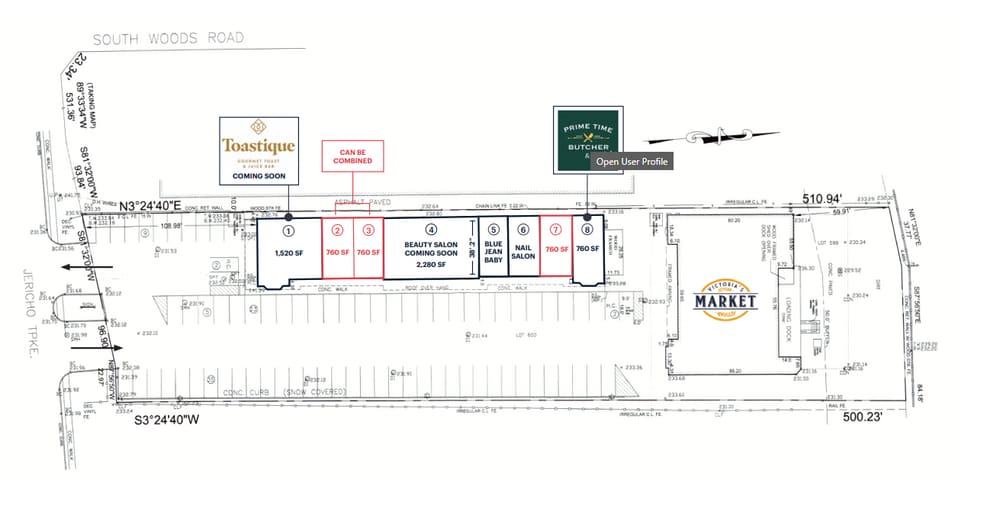 | Max. Contiguous | 1,520 SF | Frontage | Jericho Tpke |