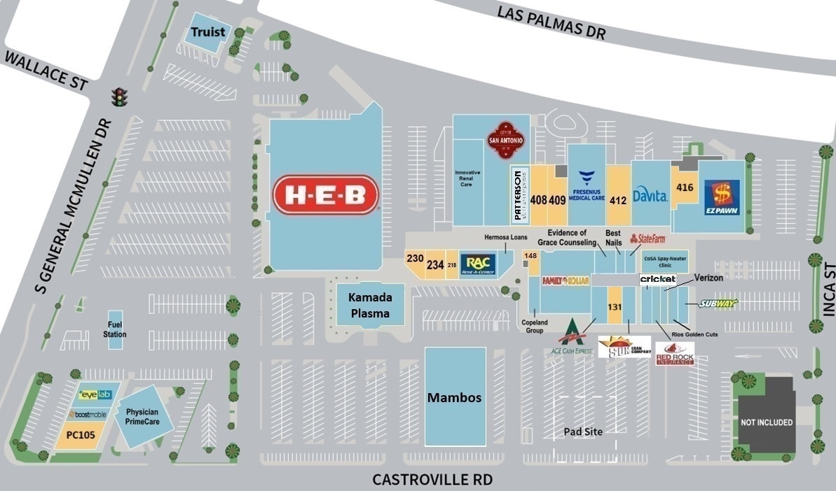 Las Palmas Shopping Center a 263,592 square foot neighborhood center located at the northeast corner of Castroville Road and S. General McMullen Drive in San Antonio, Texas. Grocery-anchored by a strong performing, long-term H-E-B, the Property is occupied by a complementary mix of national, regional, and local tenants including Family Dollar, Rent-A Center, Truist Bank, Subway, Ace Cash Express, and DaVita Dialysis. This tenant line-up serves the daily needs of the Hispanic population that makes up nearly 97% of the residents in a one mile radius.