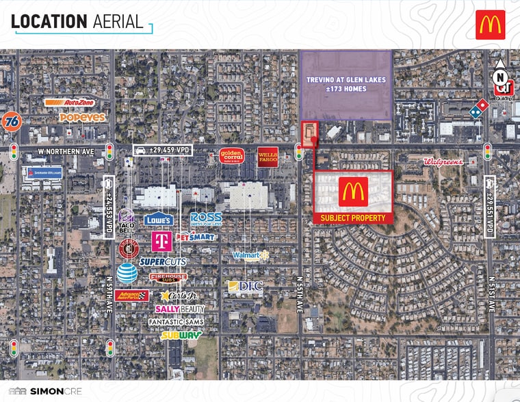 Positioned on a hard corner at the highly-trafficked, signalized intersection of Northern Ave and 55th Ave, seeing ±36,000 VPD.