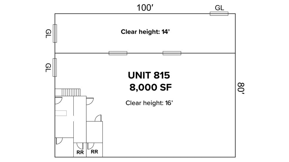 Unit 815 SF: 8,000 SF - Office: 600 SF - Warehouse: 7,400 SF • Three (3) Grade Level Doors - One (1) 12’x14’ - Two (2) 10’x10’ • Total Available SF: 24,740 SF • Power: 250 Amp | 208V | 3-Phase | 4 Wire • Gas Forced Heaters Throughout • Clear Height: 14’-16’ • Zoning: M•1 (Manufacturing) • Access: Easy Access From 2100 South Exit on I-15 and I-80 • Location: Located in the Highly Desirable Salt Lake City Submarket