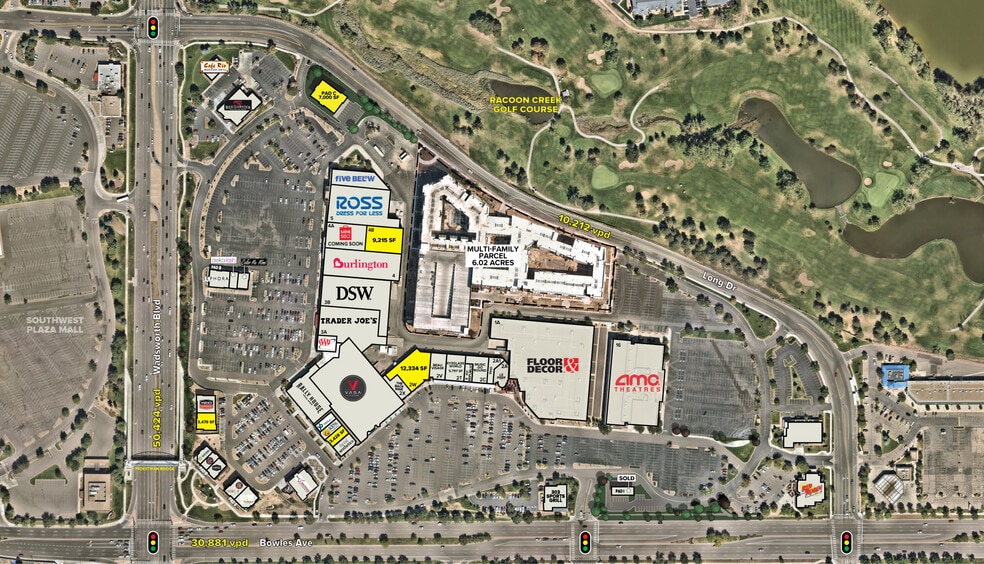 3,428 SF to 13,072 SF available. New small shop and pad opportunities. Recently signed Party City, Sleep Nation, Eat Fit Go Healthy Foods, Bishops Barbershop, On the NEC of Wadsworth and Bowles. Bowles Crossing is located directly across from the newly remodeled Southwest Plaza Mall. Strong regional corridor with over 4 million square feet of retail with in 2 miles of the property. Strong demographics and upscale communities within a 5 mile radius.