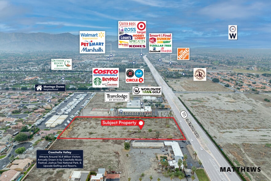 - Main Arterial Frontage: Major arterial frontage – Located along Highway 111, the primary arterial corridor spanning ±20 miles