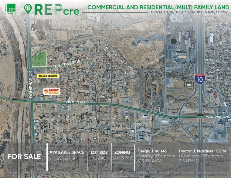 High traffic location at Doniphan Dr. and Jesse Trigg Dr. this property has a total of 6.7 acres of commercial/residential land where you can build your own business or develop a residential use. This property features: - +/- 285 feet of frontage along Doniphan Dr. and is located just a couple of minutes away from Interstate-10. - Easy access and egress to and from the property and next to Dollar General. - ¾ of a mile from the Village of Vinton County offices, the sheriff’s and police department. - Zoning: C-2 & R-2. - Potential rail access.