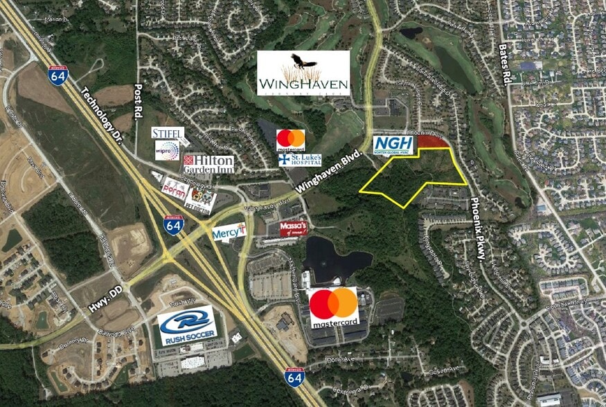 20.83 acres located in Winghaven. Perfect for apartments, office, medical, or senior living. Located off Winghaven Blvd on Phoenix Parkway. Easy access to Highway 40 and I-70 via Winghaven Blvd./Bryan Road.