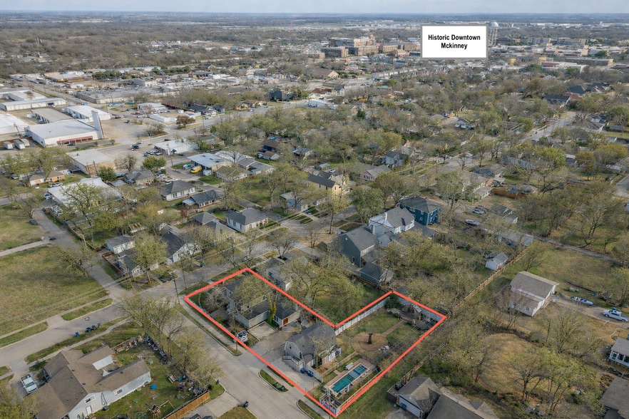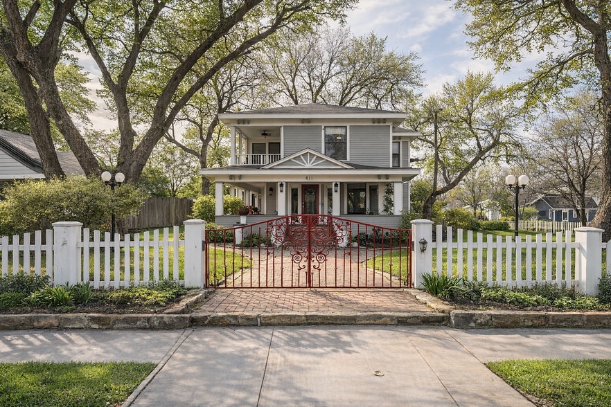 Known as “The Red Gate Inn,” this 4-bed, 4 full & 1 half bath property offers a rare investment opportunity in the heart of Downtown McKinney! This Airbnb-ready property is ideal for investors seeking to expand their portfolio and has previously operated as a successful Bed & Breakfast. It also presents incredible potential as a boutique wedding venue, event space, or private residence. Situated on a .41-acre corner lot within walking distance to McKinney Square, this historic home blends timeless charm with modern updates. The iconic red gate entry welcomes you to a flagstone patio and wrap-around porch complete with swing and multiple seating areas—creating an inviting first impression. Inside, remodeled spaces are filled with natural light and showcase hardwood floors throughout. The main house features 3 bedrooms, each with its own ensuite bath. The primary suite offers a beautifully remodeled bath with walk-in shower, vintage soaking tub, custom vanity and elegant sconce lighting. The expansive kitchen is designed for hosting, featuring stainless steel appliances including a Viking gas range, double ovens, vented hood, large island, granite countertops and built-in buffet. The kitchen flows seamlessly into the dining area and oversized living room with gas fireplace. Upstairs, two additional suites—“The Yellow Rose” and “The Blue Bonnet”—offer sitting areas and remodeled baths. The fourth bedroom suite is located above the detached two-car garage, complete with fireplace and full bath, perfect for extended stays or rental flexibility. Outdoors, the manicured grounds provide multiple gathering spaces, oversized yard, gazebo, and pool & spa, accommodating events of up to 50 guests. Whether you envision continuing its legacy as a Bed & Breakfast, operating a thriving Airbnb, hosting unforgettable events, or enjoying it as a private estate, “The Red Gate Inn” offers unmatched versatility in one of McKinney’s most desirable locations.