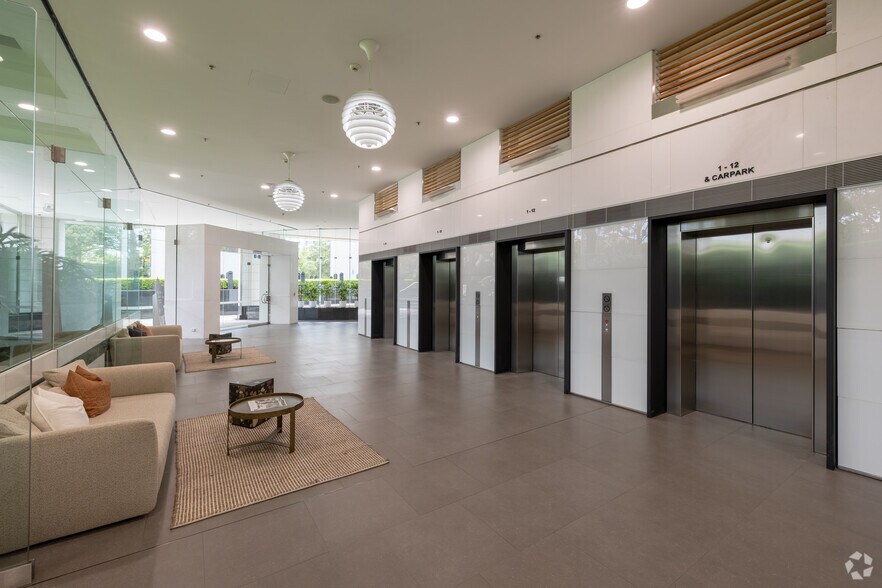 The available space comprises 2,088 m² across Levels 10 and 11, featuring an existing high-quality fitout with interconnecting stairs, four sides of natural light, and expansive district views. The configuration includes multiple meeting rooms, private offices, kitchen and breakout areas, and approximately 179 workstations across both floors. Each level can also be leased individually, offering flexibility for businesses of varying sizes. The Zenith provides a true campus-style environment with a prominent forecourt, landscaped outdoor areas, and informal meeting spaces. Onsite amenities include childcare facilities, end-of-trip services, a café, a conference center, and 24/7 security with concierge support. This combination of features makes The Zenith an outstanding choice for organizations seeking a well-appointed, fully integrated office solution in a strategic Lower North Shore location.