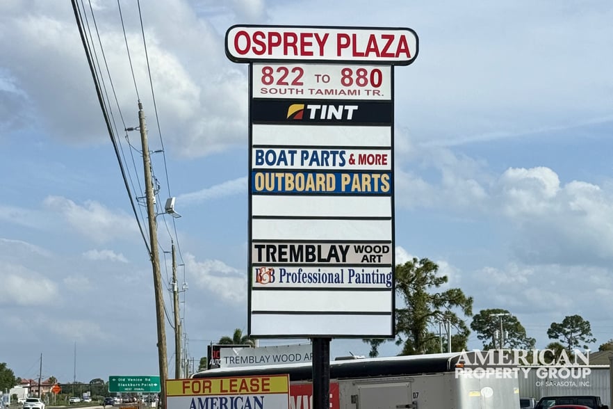 American Property Group of Sarasota, Inc. presents 822-880 S Tamiami Trail, Osprey, FL Property Type: Office/Retail/Warehouse Property Size: Multiple Units Available Osprey Plaza offers multiple spaces for lease in a recently renovated plaza (2025) featuring a new roof, HVAC, ceilings, flooring, walls, and a freshly painted exterior. Tenants enjoy a modern, move-in-ready environment in a highly visible location on busy S Tamiami Trail in the heart of Osprey. Available Units: 846 - 1,750 SF Office/Retail Space ($17.50 SF/yr MG | $2,552/month MG) 880 - 2,750 SF Warehouse Space ($15 SF/yr MG | $3,437/month MG)