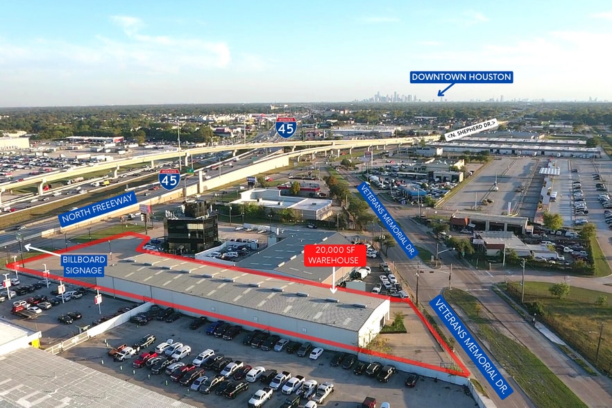 Exceptionally well located Flex property, available spaces include a 20,000 SF building with a mix of industrial warehouse office/showroom, a 3,700 SF office space, and a 13,600 Auto mechanic/body shop. High-Traffic Exposure: With over 240,000 cars passing by daily, this location offers unmatched visibility for any business. 2 billboards are available for tenant's use. Easily accessed from I-45 freeway frontage or Veterans Memorial Dr. 20,000 SF Industrial Warehouse/Showroom. Flexible Layout: 2,000 SF of showroom/office space at the front and 1,000 SF of additional office space at the back section of the warehouse, 17,000 SF warehouse area with 22-foot clear height. A/C and Central Heating in the office areas, Natural Lighting in the 17,000 portion of the warehouse, equipped with 3-phase power (480 volts, 300 amps), making it suitable for heavy industrial operations. This building is ideal for manufacturing, storage, distribution, or any business requiring a substantial amount of functional space. It offers 2 dock-high doors and 2 drive-in grade-level doors. A 15’x9’ billboard is available for this space, and 70 parking spaces are available. Dual access is available from the freeway frontage and Veterans Memorial Dr.