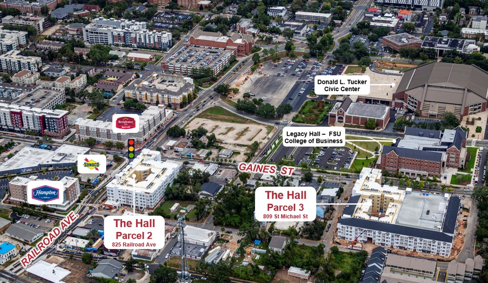 The Hall (Parcel 2) sits on the corner of Gaines Street and Railroad Avenue. Within walking distance to FSU, FAMU, Student Housing District, Downtown and The Capitol.