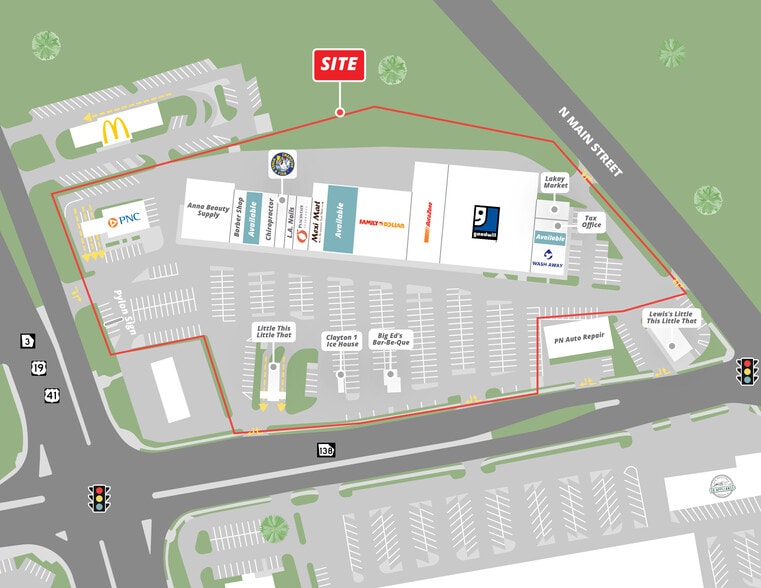 • Positioned directly on GA-138 Spur, a key corridor through Jonesboro with consistent daily traffic and connectivity to Tara Blvd and major roads serving Clayton County • High vehicle exposure makes it ideal for retail that benefits from drive-by visibility and convenience shopping • Hosts essential operators like Family Dollar, Goodwill Thrift Store & Donation Center, and AutoZone, which generate regular customer visits • Good access for surrounding residential communities within the 30236 zip code