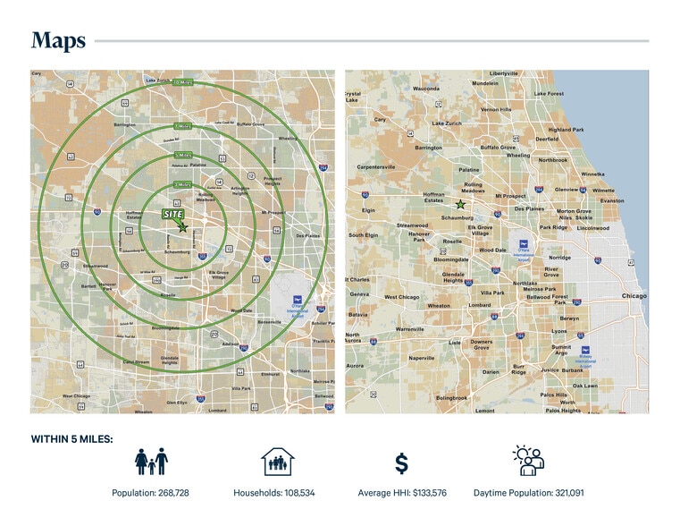 ANCHOR SPACE AVAILABLE + 58,423 SF Divisible GREAT VISIBILITY + Only 60 yards from curb of Golf Rd. + 230 feet of frontage + 26,700 VPD traffic count + Pylon Signage SUPER REGIONAL MARKET + Less than 1 mile from Woodfield Mall + Over 5 Million SF of retail in corridor + Near IKEA and many other furniture stores STRONG DEMOGRAPHICS + 274,208 people within 5 miles + $130,684 average household income