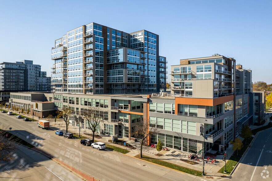 Office space now available at the ultra-modern Galaxie building on E. Washington Avenue with nearly 60,000 cars daily. Galaxie is anchored by Festival Foods grocery store, has 200 residential units and three floors of office and retail space. The building offers exceptional amenities including a fitness room, showers, outdoor patio, shared conference room and free onsite parking along with a prime location in the Cap East District within walking distance of the Capitol Square, Willy Street, the Sylvee Music Venue and Breese Stevens Field. Floor to ceiling glass and 15’ ceiling heights.