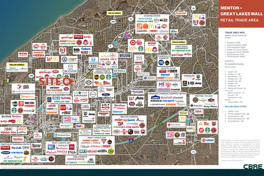 - Highway visibility to I-90 with traffic counts of 57,134 VPD (Source: ODOT).