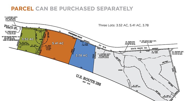 Parcel subdivided into three lots (3.52 AC, 5.41 AC, 3.78 AC) and can be purchased separately